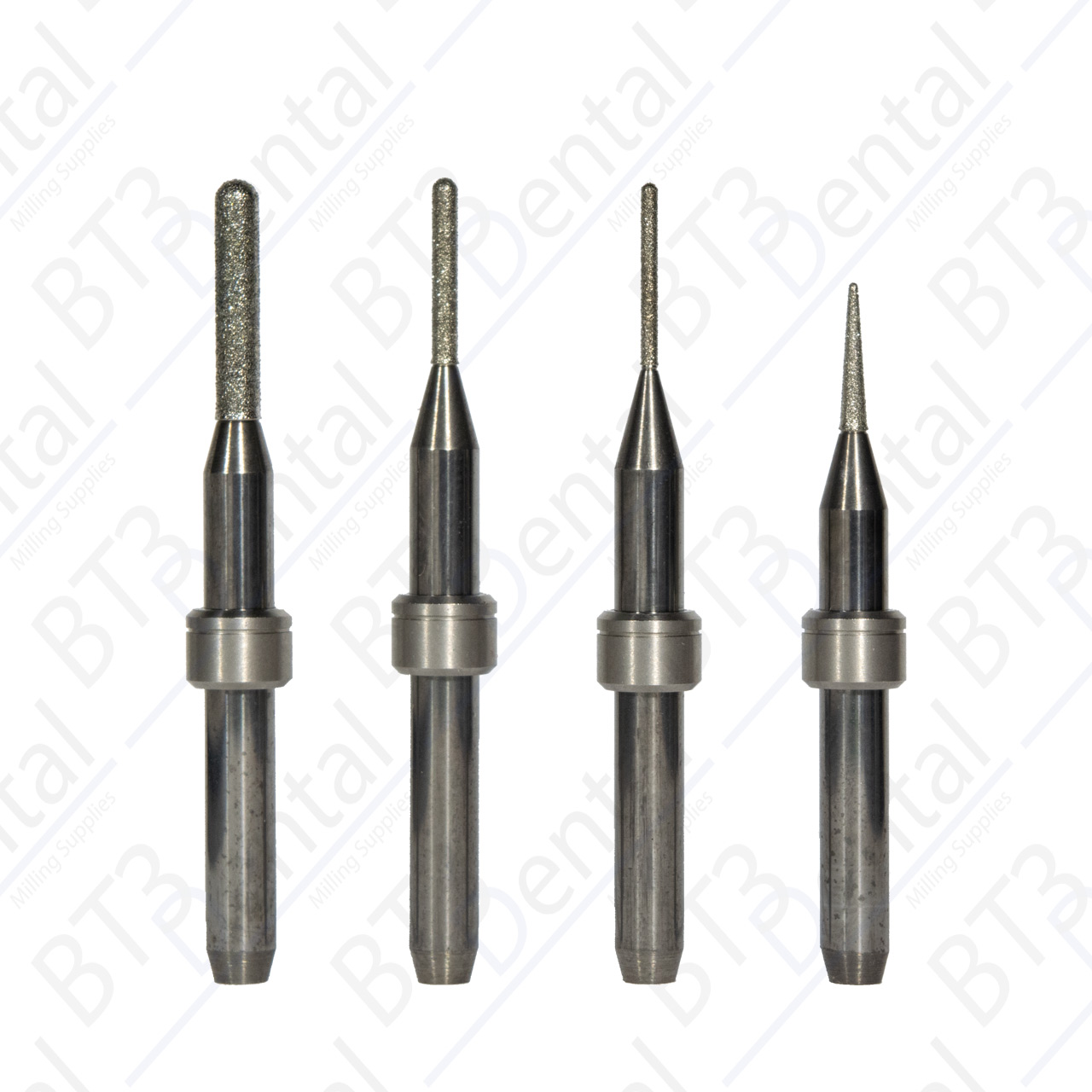 BT3 Grinding tools are designed for dental milling of Lithium Disilicate, hybrid and glass ceramics. BT3mod’s Proprietary Multi-layered, “ULTRA”, coat allows for aggressive milling feed rates without sacrificing tool wear. Reliable. Repeatable.